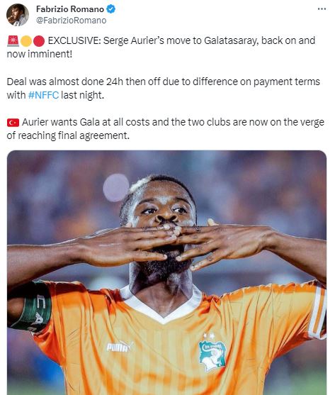 Fabrizio Romano a intrat pe fir. Galatasaray a reluat negocierile cu Nottingham Forest, pentru transferul lui Serge Aurier. Transferul ivorianului la Galata ar fi foarte aproape de a se concretiza, potrivit jurnalistului.
