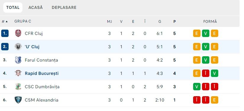 Clasamentul final din grupa C a acestei ediții de Cupa României