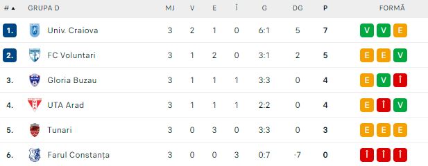 Astfel, în următoarea fază a competiției s-au calificat Craiova și Voluntari. Iată clasamentul final:
