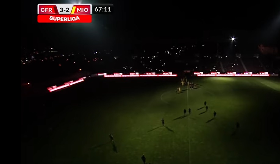 Meciul dintre CFR Cluj și CS Mioveni, care contează pentru runda a 3-a din Superliga, s-a întrerupt în minutul 63. Nocturna arenei din Gruia a căzut, iar arbitrul a trimis cele două echipe la cabine. Dacă organizatorii nu ar fi remediat problema în 60 de minute, campioana ar fi riscat să pierdă întâlnirea la „masa verde”.