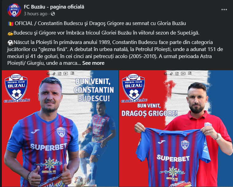 ”Născut la Ploiești în primăvara anului 1989, Constantin Budescu este recunoscut pentru tehnica sa deosebită. A debutat la Petrolul Ploiești, unde a jucat 151 de meciuri și a marcat 41 de goluri în perioada 2005-2010. Ulterior, a evoluat pentru Astra Ploiești/Giurgiu, unde a înscris de 44 de ori în 115 apariții între 2011 și 2015. Budescu a jucat și la echipe din străinătate, precum Dalian Yifang, Al-Shabab și Damac FC, dar și la cluburi de top din SuperLigă, precum FCSB, FC Voluntari și Viitorul Constanța. În 2017, a fost desemnat cel mai bun fotbalist român al anului, iar în 2014 a câștigat Cupa și Supercupa României cu Astra Giurgiu. La echipa națională, Budescu a marcat de cinci ori în 15 apariții. Bun venit, Constantin Budescu!”, au scris reprezentanții Gloriei Buzău pe Facebook.