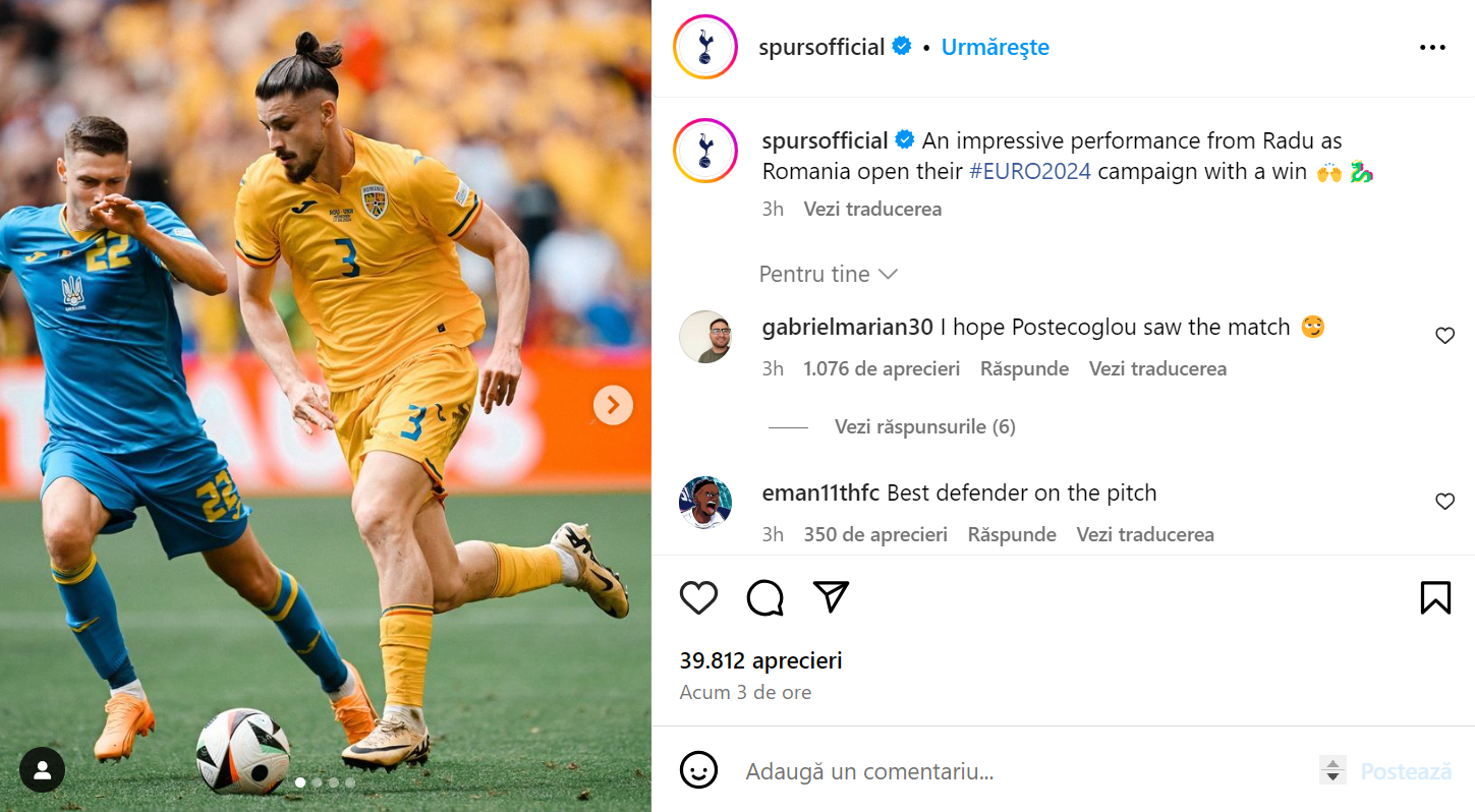 Tottenham a fost cu ochii pe Radu Drăgușin și a reacționat după România – Ucraina 3-0. Un mesaj superb a apărut pe contul de Instagram al echipei.