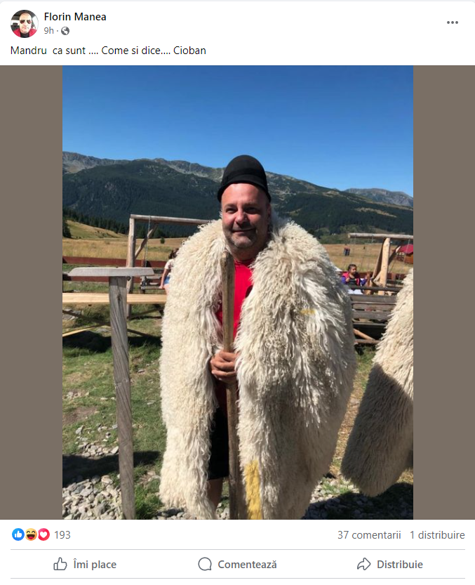 „Mândru că sunt… Come si dice… Cioban”, a scris Florin Manea, pe Facebook.