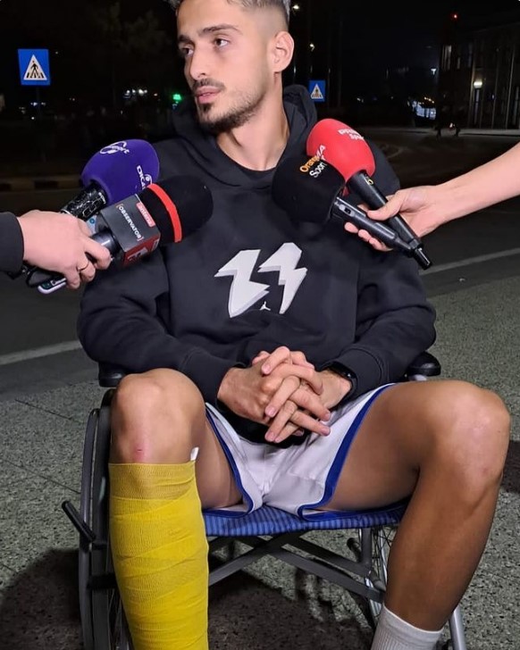 Vineri seara, Rrahmani a ajuns la București într-un scaun cu rotile și cu un uriaș bandaj la piciorul drept, cel accidentat.