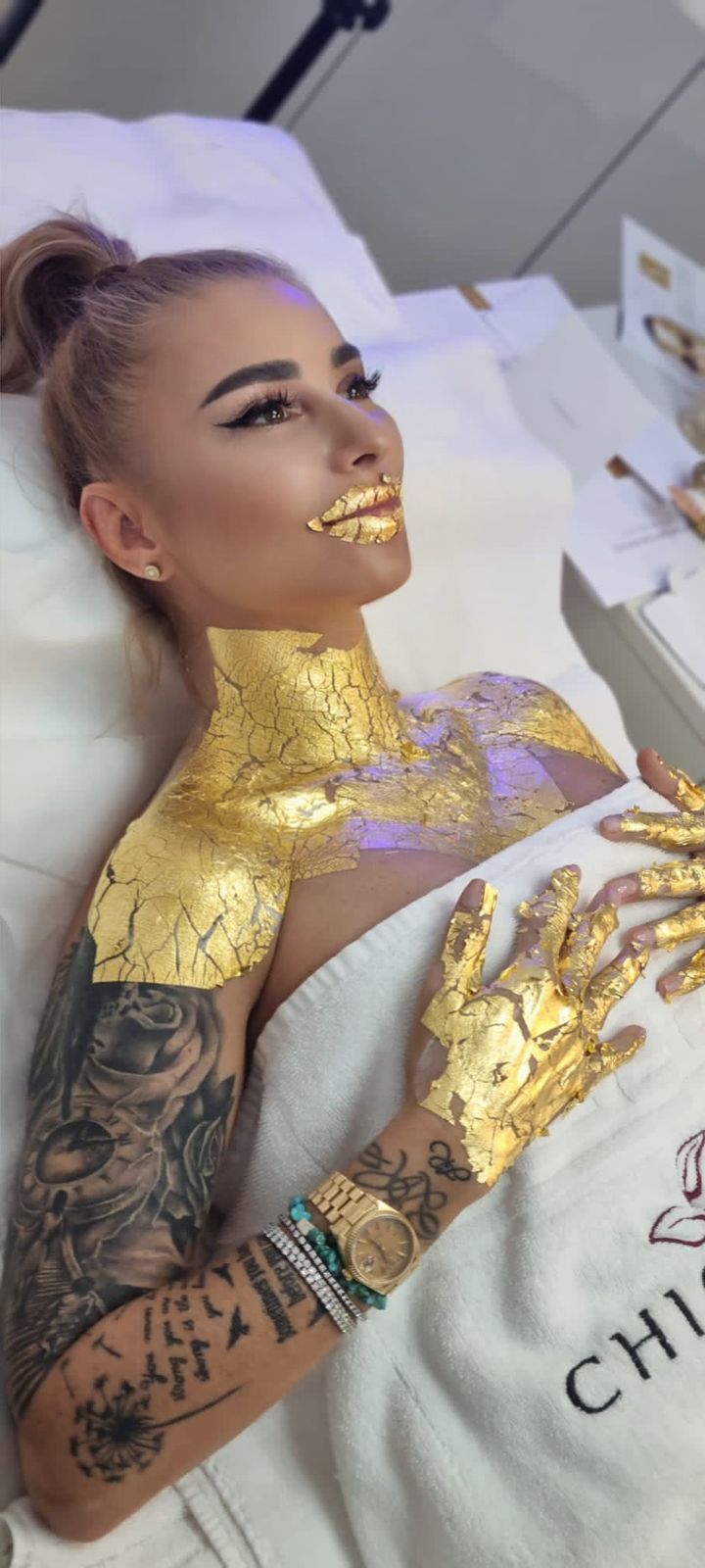 ”Fac săptămânal acest tratament cu aur de 24 de karate. Este un tratament care-mi ajută pielea să fie elastică, o hidratează și o face să strălucească.