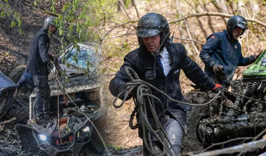 Un român pasionat de off-road a intrat în noroi până la genunchi, deși era îmbrăcat în costum. Cei care se aflau alături de el pe circuit au încremenit când i-au văzut ținuta. Nimeni nu a înțeles ce a fost în mintea bărbatului atunci când s-a afundat în genunchi în ținută de nuntă.