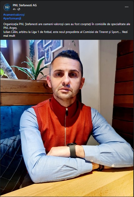 ”Organizația PNL Ștefanesti are oameni valoroși care au fost cooptați în comisiile de specialitate ale PNL Argeș.  Iulian Călin, arbitru la Liga 1 de fotbal, este noul președinte al Comisiei de Tineret și Sport. Felicitări și mult succes”, a anunțat PNL Ștefănești.