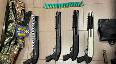 Poliția a publicat imagini impresionante cu „arsenalul” găsit în urma perchezițiilor. Au fost confiscate materiale pirotehnice, torțe și petarde, dar și arme de foc, puști și pistoale.