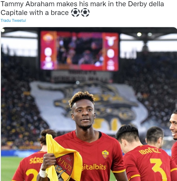 AS Roma a câștigat cu 3-0 derby-ul cu Lazio. Tammy Abraham a avut o seară de vis. Atacantul adus de la Chelsea a reușit o dublă, iar primul gol a intrat în istoria Derby della Capitale.