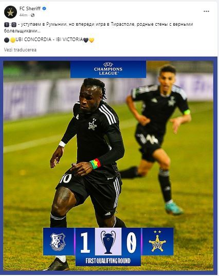 „Pierdem cu 1-0 în România, dar mai este un meci la Tiraspol, pe teren propriu, alături de fanii noștri loiali. Unde este unitate, este victorie”, a transmis Sheriff Tiraspol, prin intermediul paginii oficiale de Facebook.