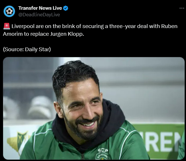 Sky Sports Germany notează că Ruben Amorim este „pregătit să accepte o nouă provocare interesantă în Anglia de la începutul sezonului viitor”. În plus, tehnicianul s-ar fi înțeles deja cu oficialii clubului pentru un contract valabil 3 ani.