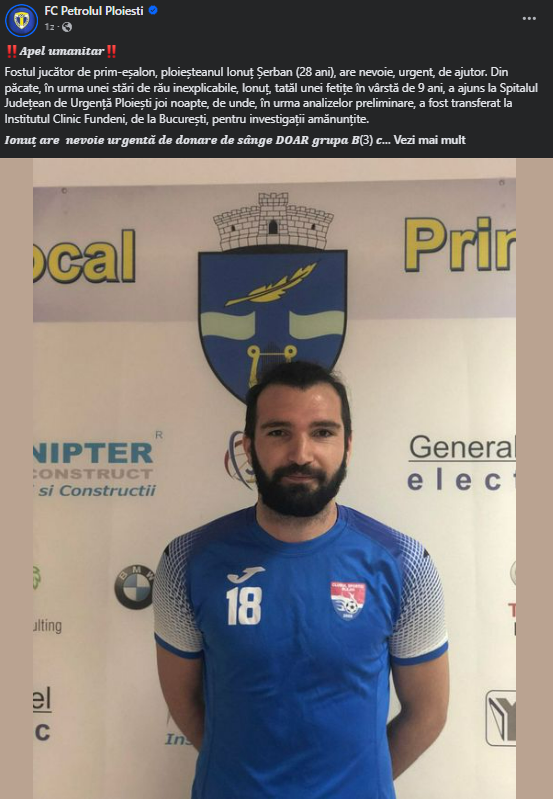 Petrolul Ploiești a postat un mesaj pe social media după ce s-a aflat de problemele de sănătate ale lui Ionuț Șerban. Ploieștenii îi îndeamnă pe fani să doneze sânge.