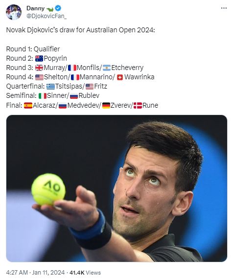 Djokovic și-a aflat deja adversarul din primul tur. Iată cum ar putea arăta culoarul său la AO 2024: