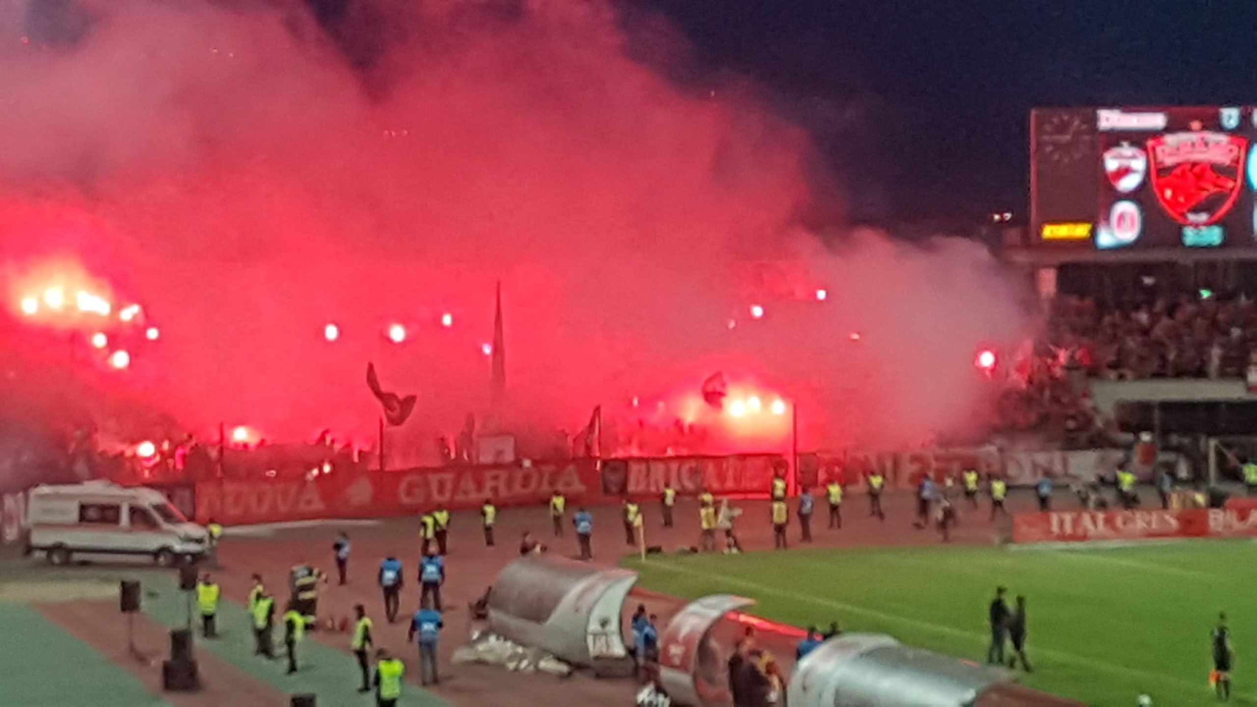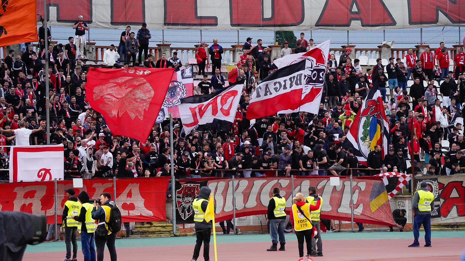 UPDATE 20:30: „Dinamo suntem noi, Dinamo suntem noi Și suntem frați cu voi”, scandează fanii lui Dinamo. „U Cluj suntem noi, U Cluj suntem noi și suntem frați cu voi”, au răspuns cei de la U Cluj.