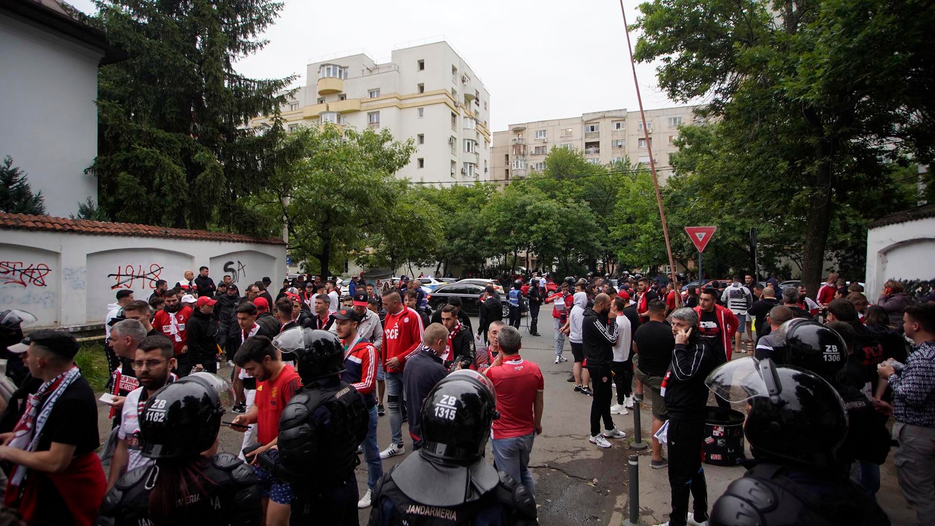 UPDATE 19:00. Mașinile forțelor de ordine au început să își facă apariția pe străzile adiacente stadionului. Mai mulți jandarmi au apărut la intersecția dintre Ștefan cel Mare și Barbu Văcărescu.
