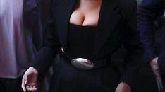 Cântăreaţă a purtat un costum formal croit pentru femei care vor să-și pună în valoare formele apetisante, mai ales că ținuta avea un decolteu îndrăzneț și arăta foarte extravagant.