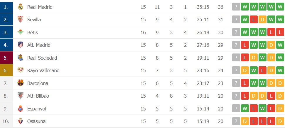 După 15 meciuri, Barcelona rămâne cu doar 23 de puncte și este cu un pas în spatele lui Rayo Vallecano, ocupanta ultimei poziții care asigură prezența în cupele europene.