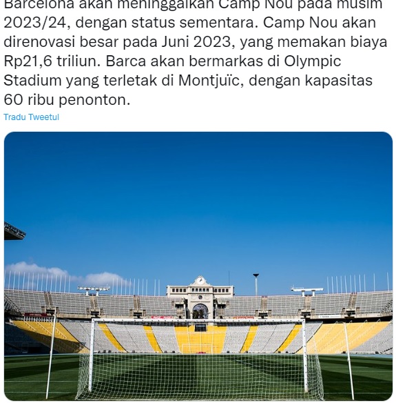 Barcelona will move to the city’s Olympic Stadium for the 2023-24 season while Camp Nou undergoes renovations ? pic.twitter.com/QwKqndDSuj