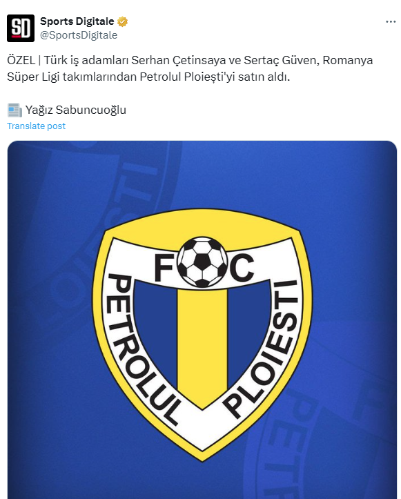 Publicația turcă Sports Digitale susține că Petrolul a fost achiziționat de doi oameni de afaceri din Turcia, Serhan Cetinsaya și Sertac Guven, care, în trecut, au fost implicați la un „colos” din fotbalul turc, Beșiktaș.