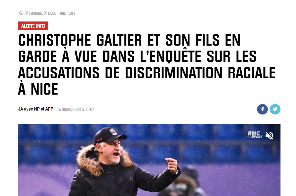 Deşi fostul director sportiv de la Nice, Julien Fournier, a refuzat să răspundă presei atunci când a fost întrebat care au fost motivele reale ce au dus la ruptura colaborării dintre acesta şi Galtier, jurnaliştii de la RMC Sport au descoperit un e-mail transmis de Fournier către şefii lui Nice. În mesajul cu pricina, Fournier îi informează pe cei din conducere despre comportamentul rasist al lui Galtier.