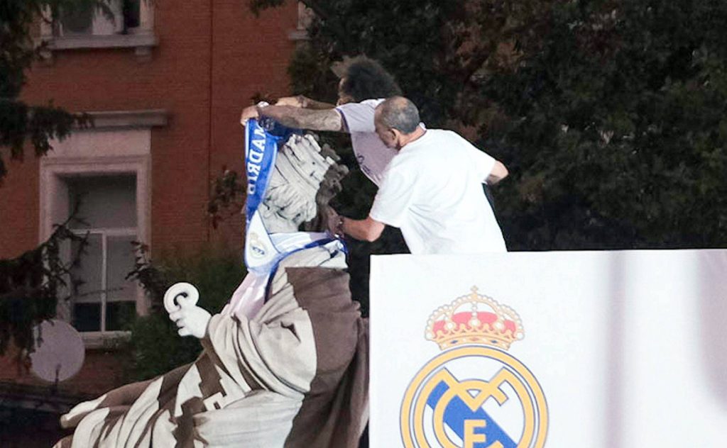 Update: Moment emoționant, încununarea serii. La ultima acțiune, ca jucător al Realului. Marcelo pune steagul și fularul în jurul gâtului zeiței, în celebra piață Cibeles. Este cel mai frumos mod prin care brazilianul și-a luat la revedere de la fanii madrileni