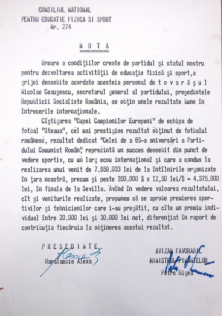 La 37 de ani distanță de cel mai important eveniment din istoria fotbalului românesc, câștigarea Cupei Campionilor Europeni de către Steaua, apar detalii cu privire la sumele de bani încasate de cei mai importanți oamenii din lumea comunistă.
