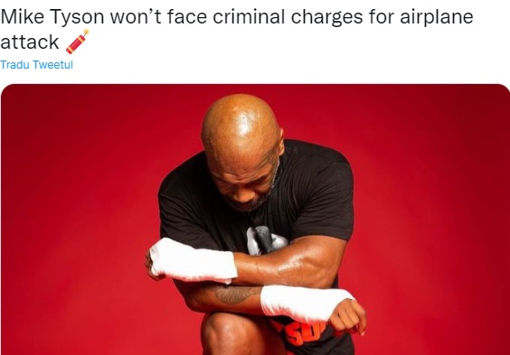 Mike Tyson (55 de ani) a scăpat cu bine după ce l-a bătut pe un pasager care l-a agasat în timpul unui zbor. Justiția a hotărât să nu îl pună sub acuzație pe celebrul fost pugilist.