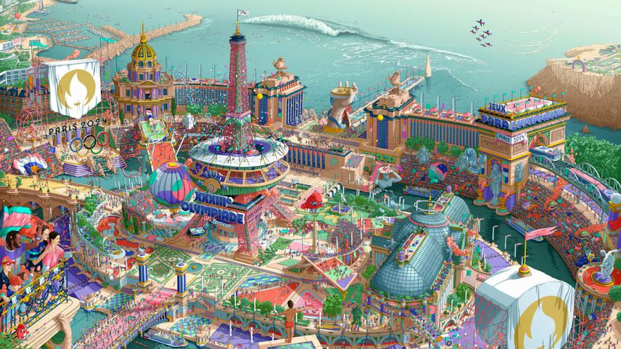 1. Posterul oficial al competiției, realizat de ilustratorul local Ugo Gattoni. Acesta a lucrat timp de cinci luni, acumulând un total de 2.000 de ore în atelierul său pentru a crea acest poster. Posterul ilustrează un Paris vibrant, cu sportivi în acțiune și cu publicul susținându-i, având Turnul Eiffel în centru, pe care scrie „XXXIII Olympiade”, numărul actualei ediții a Jocurilor Olimpice.