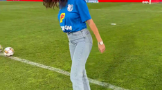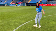 Modelul în vârstă de 33 de ani și-a luat fiul la meciul cu CFR și a schimbat locul pe care stădea de obicei în stadion. A luat loc la tribuna a doua a arenei din Academie, și nu printre VIP-uri, la oficială.
