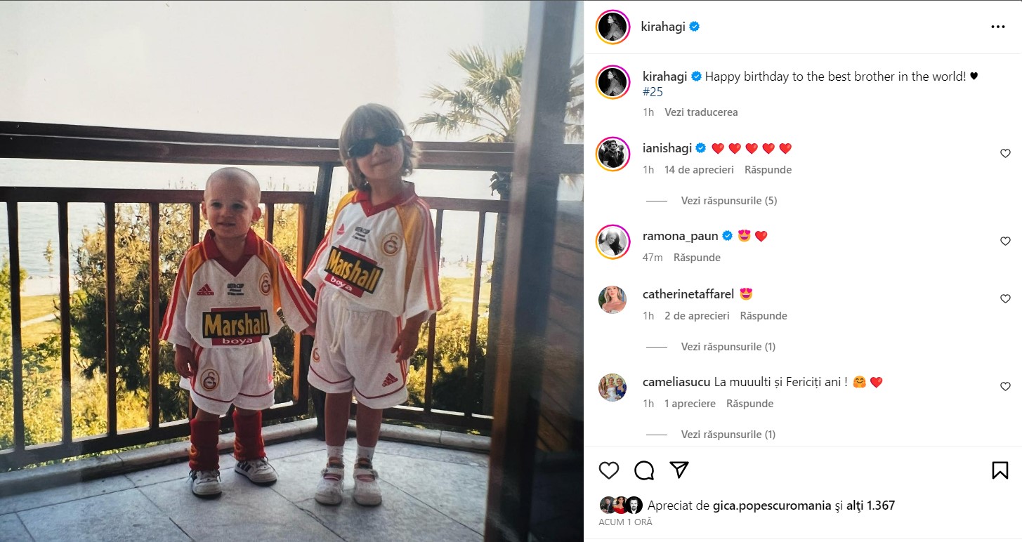 ”La mulți ani celui mai bun frate din lume”, a scris Kira Hagi. Ianis, extrem de emoționat, i-a răspuns prin niște emoticoane cu inimă roșie.