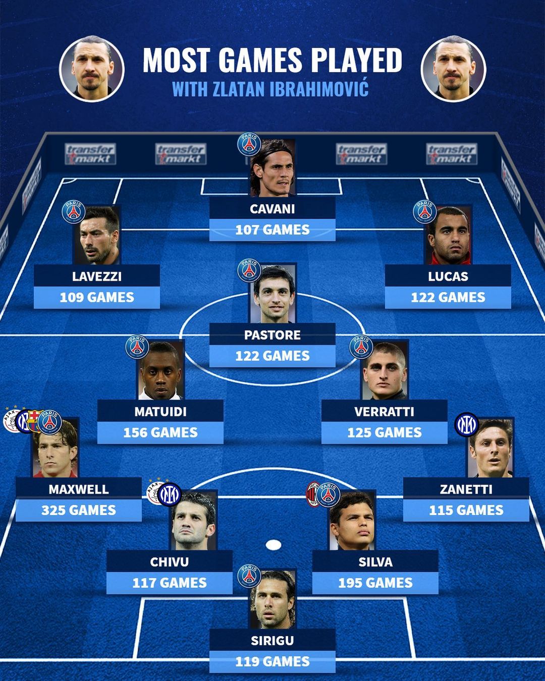 Cristi Chivu e la loc de cinste. Fostul fundaş al naţionalei României a prins dream-team-ul jucătorilor care au bifat cele mai multe meciuri alături de Zlatan Ibrihimovic. Fost coleg cu atacantul suedez atât la Ajax Amsterdam, cât şi la Inter Milano, Chivu a împărţit terenul cu Ibrahimovic în nu mai puţin de 117 meciuri.