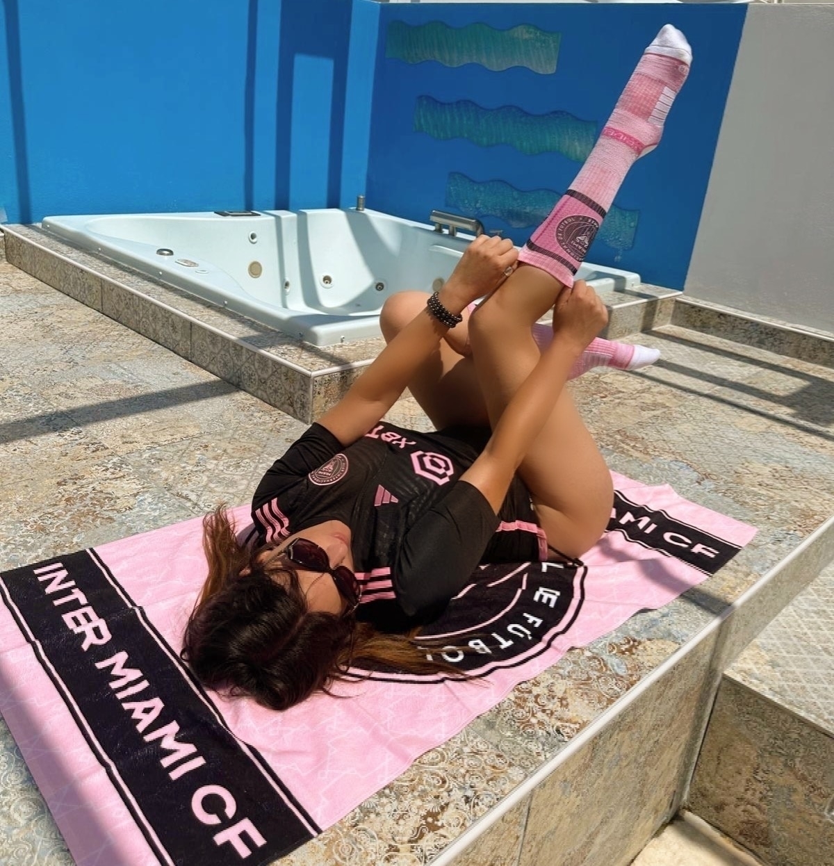 Claudia Romani a ținut să îi înțepe pe rivalii celor de la AC Milan anul trecut. Aceasta s-a pozat îmbrăcată doar în costum de baie, întinsă pe un prosop cu sigla lui Inter Miami. În mesajul postat alături de imagine, i-a ironizat pe cei de la Inter Milano afirmând: „Interul adevărat… este cel din Miami!”