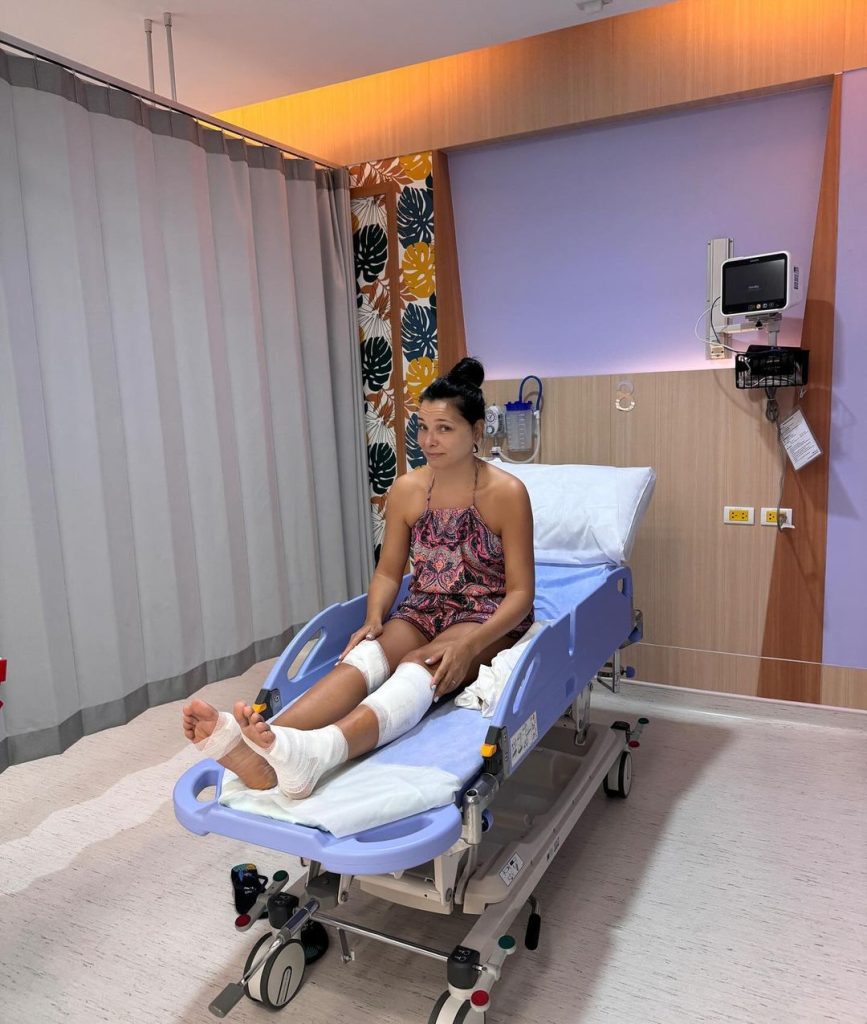 Vedeta de la Pro TV a postat și câteva imagini surprinse pe patul de spital. Ea le-a arătat fanilor că medicii i-au pus în ghips unul dintre picioare, dar nici celelălalt nu a fost ferit de probleme. Îndrăgita prezentatoare are ambele picioare bandajate, situație care îi nemulțumește pe fanii săi.