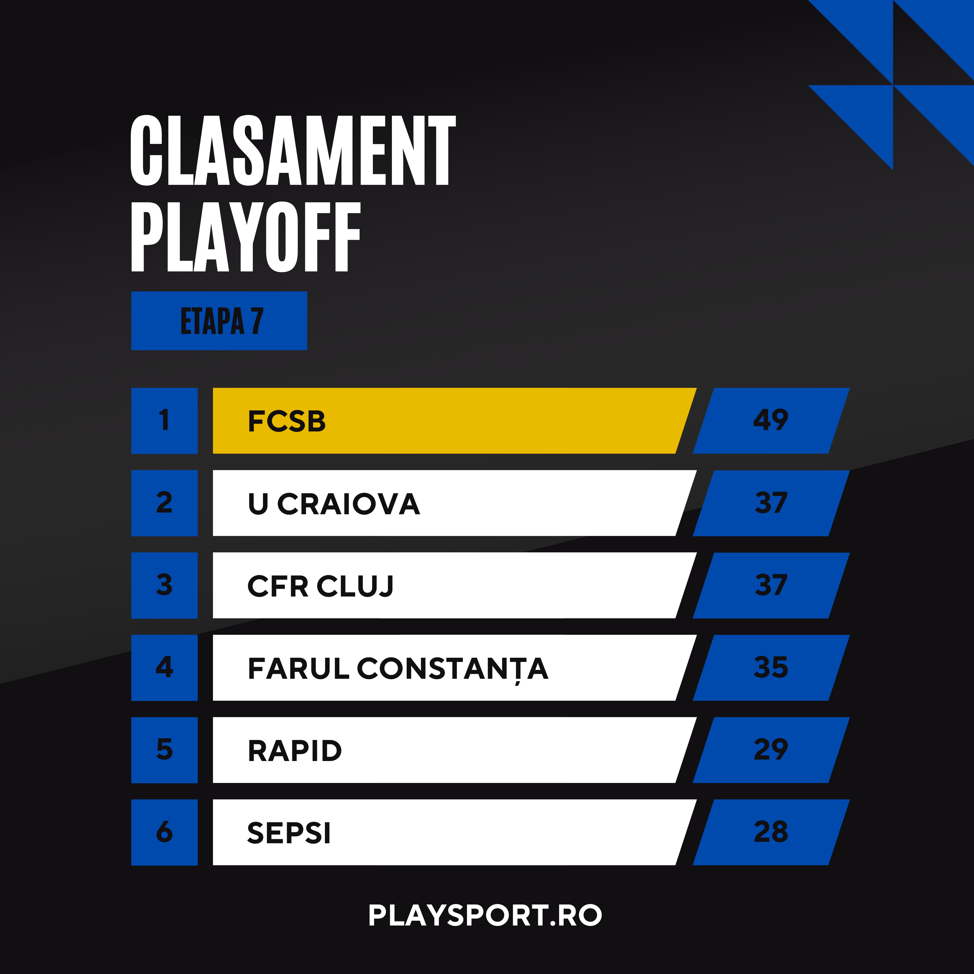 În urma acestui rezultat, oltenii urcă pe locul 2, sub deja campioana FCSB.
