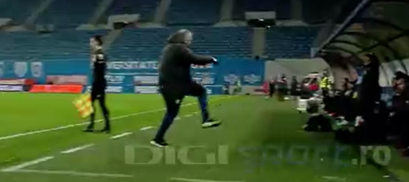 Ciprian Deac a deschis scorul la Craiova, dar reușita a fost anulată de Marcel Bîrsan, după consultarea VAR. Un prim moment de frustrare pentru Dan Petrescu, care și-a manifestat evident nemulțumirea. Nici finalul primei reprize nu l-a prins mai liniștit.
