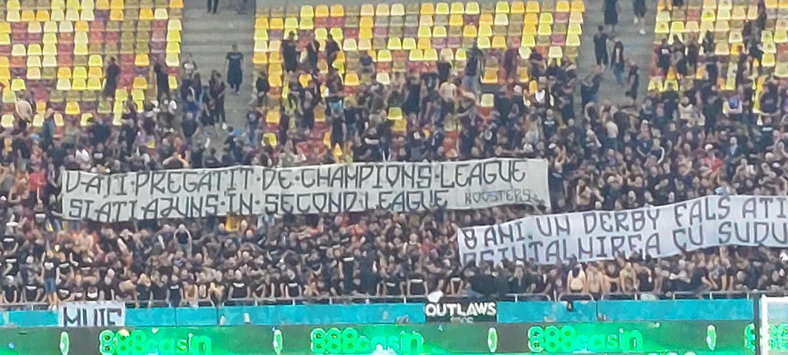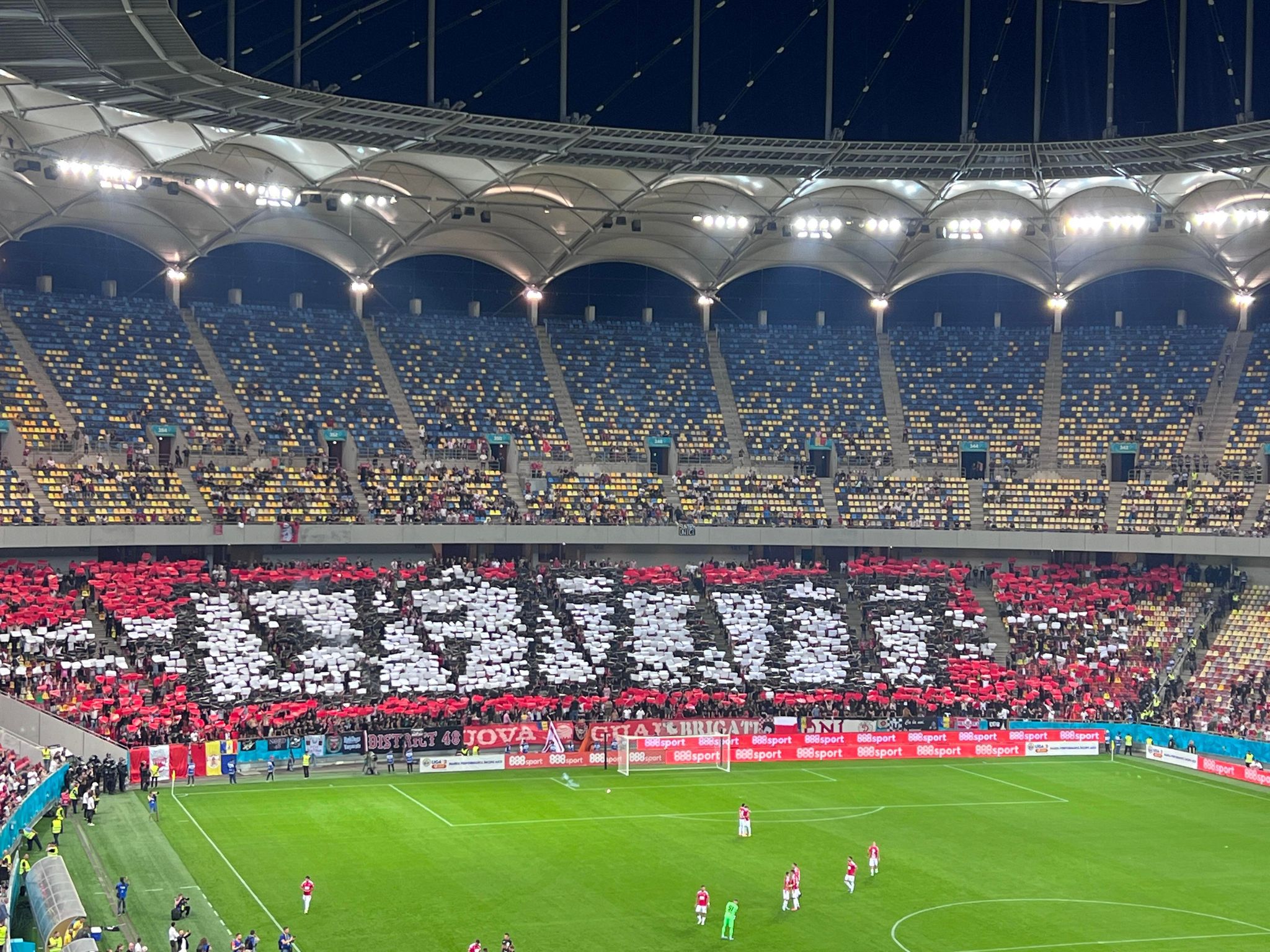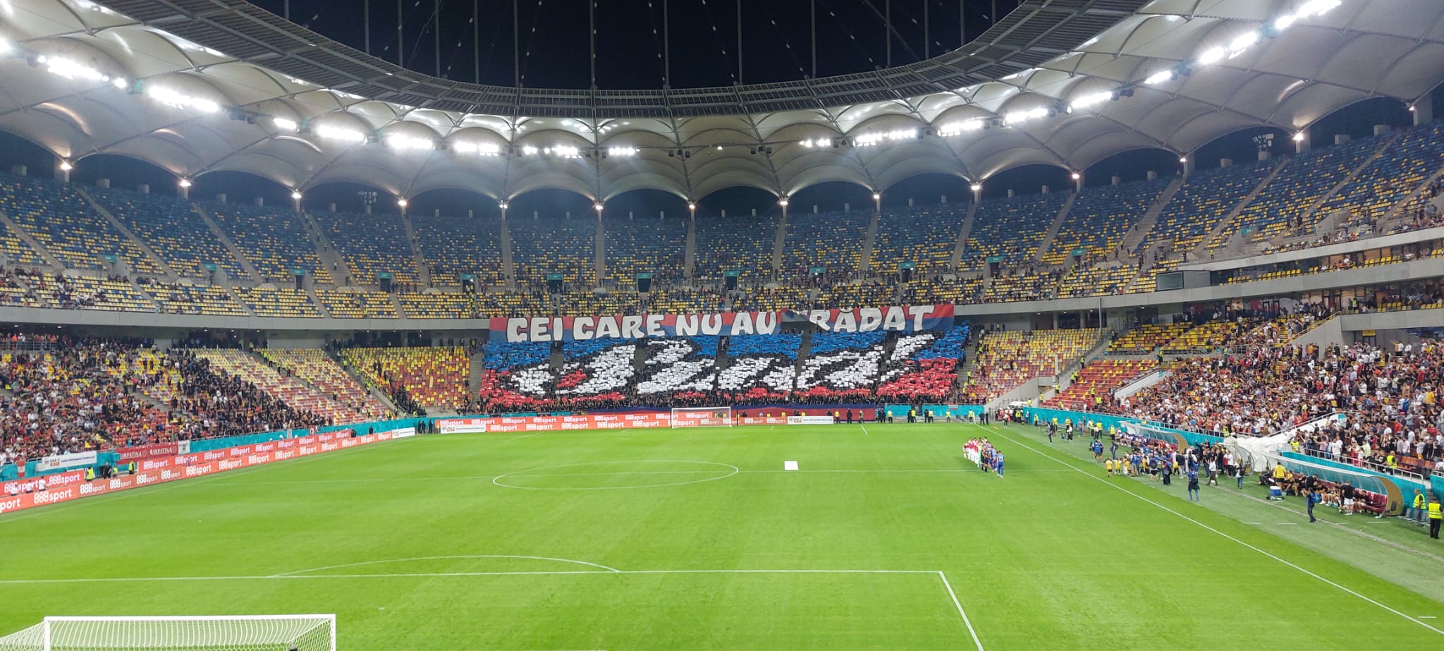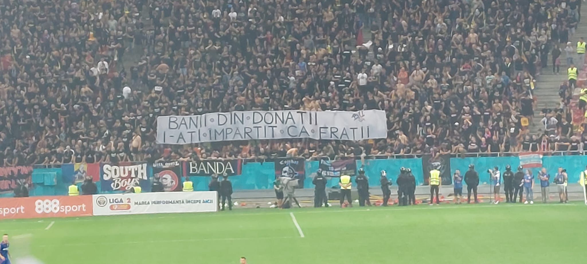 „Militarii” au afișat mesajul „Cei care nu au trădat” și, sub formă de cartoane, „Sud”, pe tot inelul întâi al peluzei primite.