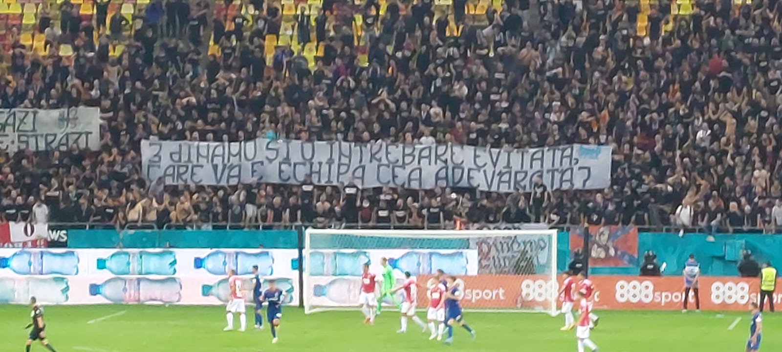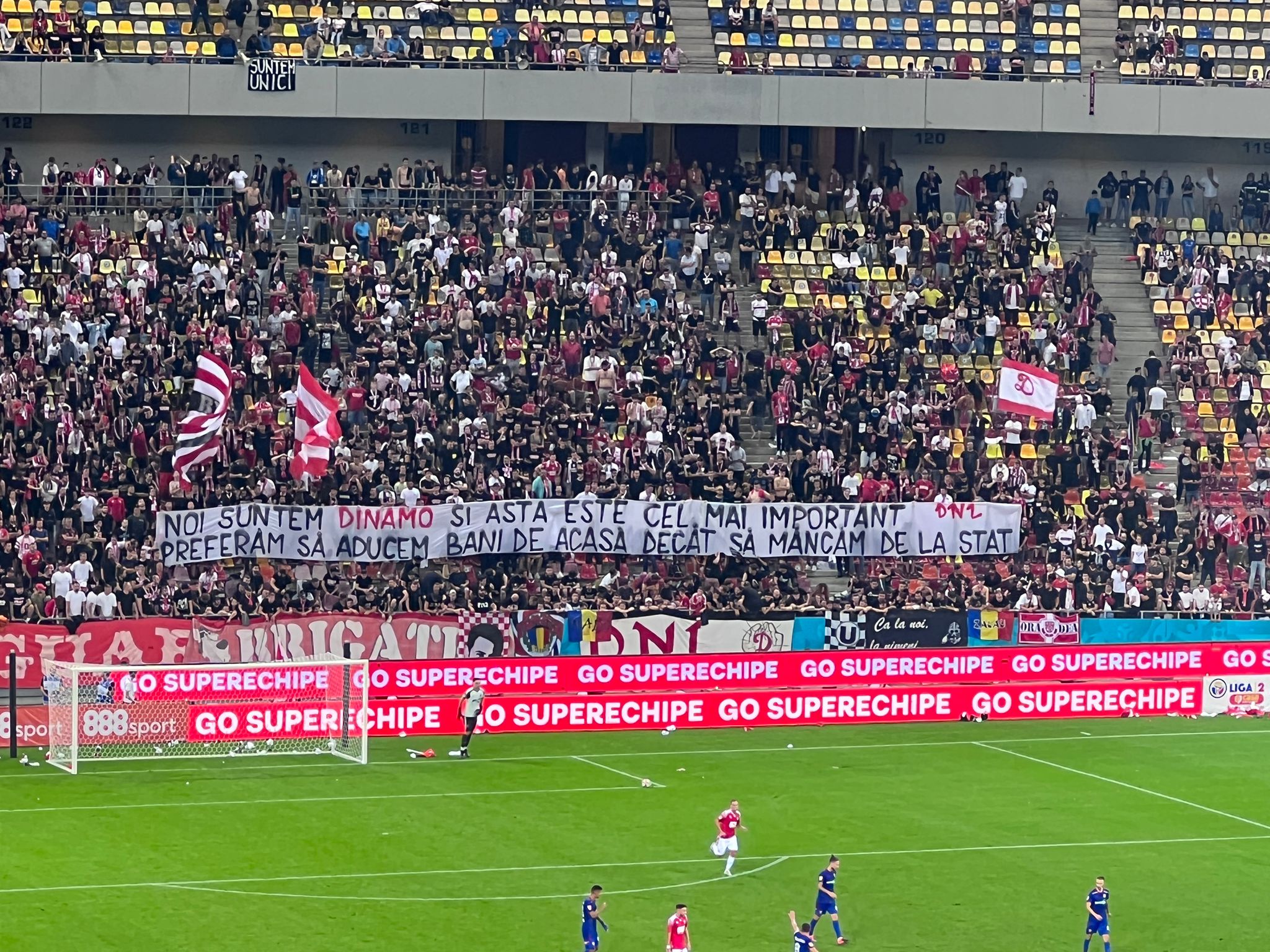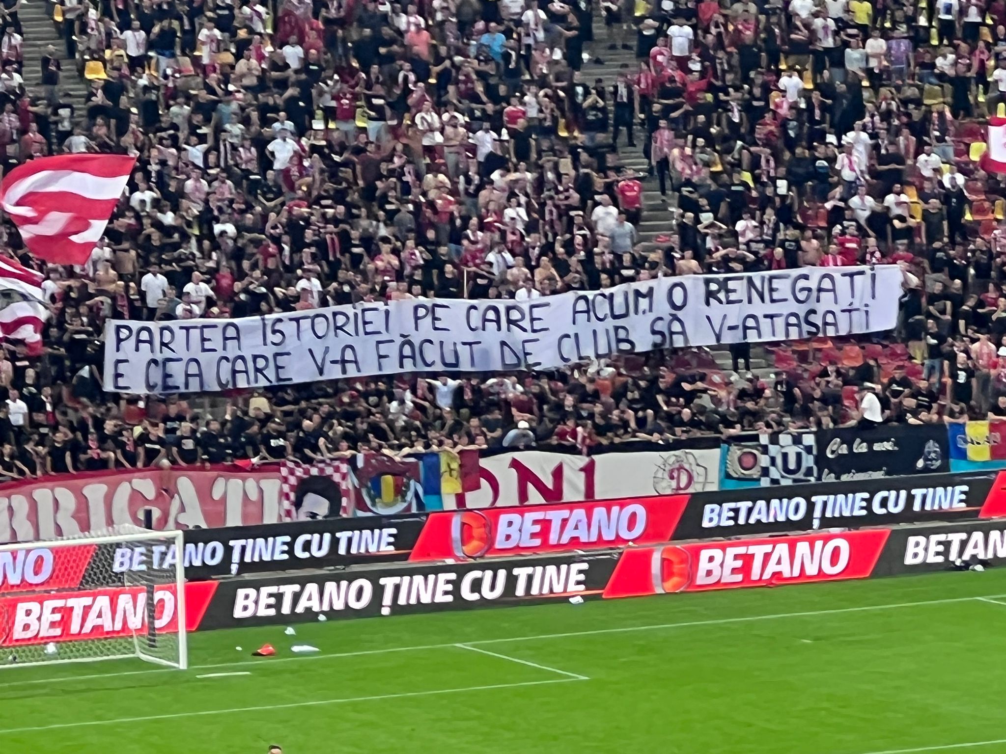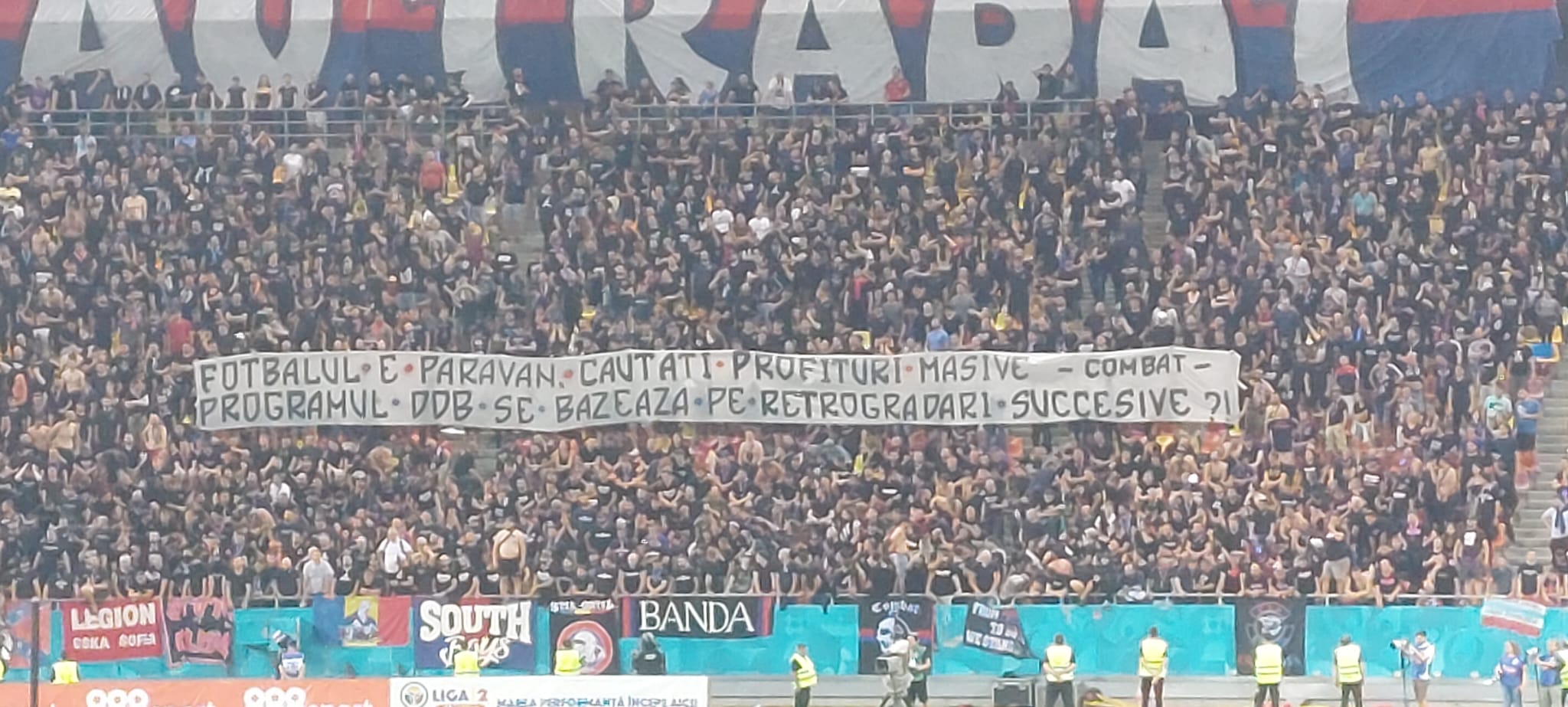 Pe cealaltă parte, roș-albaștriii, de la inelul 1 sau 3, au aruncat mesaje către „câini”, ironizând situația financiară precară a clubului, dar și Programul DDB, tot mai contestat în ultimele luni.