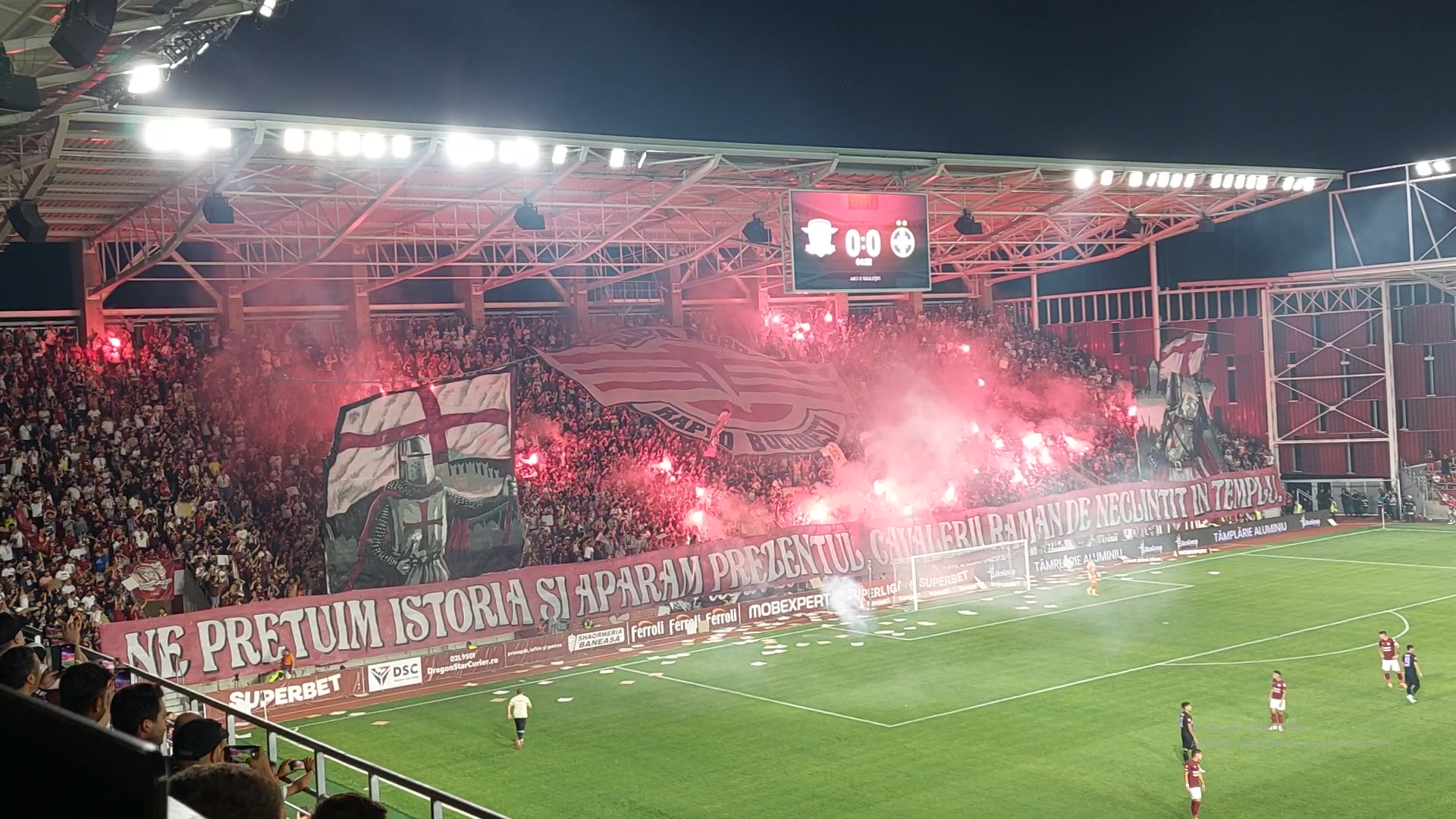 Astfel, încă din primele minute, atât Peluza Nord Rapid, cât și Peluza Nord FCSB și-au afișat coregrafiile.