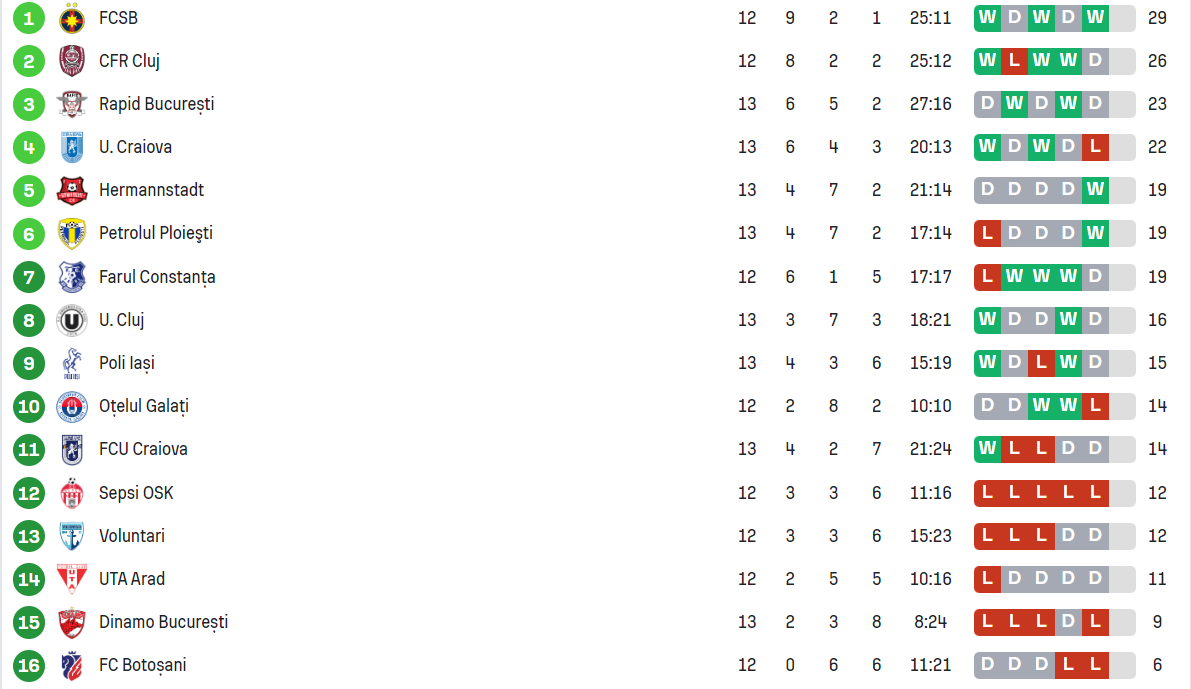 Plecarea lui Laurențiu Reghecampf nu a destabilizat-o pe CSU Craiova, cea care este neînvinsă în ultima lună în toate competițiile. În ultima rundă, formația din Bănie a remizat, scor 0-0, pe terenul celor de la Voluntari, un duel în care Alexandru Mitriță a ratat o lovitură de pedeapsă. După pasul greșit al rapidiștilor, 2-2 la UTA, elevii lui Papură pot urca pe podium cu un succes contra ”găzarilor”, cei pe care i-au învins de fiecare dată în sezonul anterior.