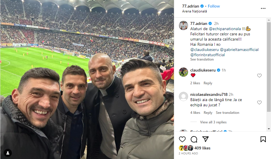 Gabi Tamaș, fost component al naționalei României, a urmărit meciul „tricolorilor” alături de doi foști colegi de la FCSB, Adi Popa și Claudiu Keșeru, dar și de un fost coechipier de la Dinamo, Florin Bratu.