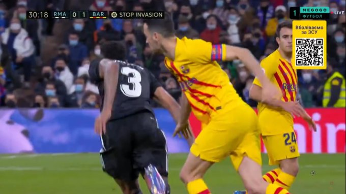 Producătorii iberici ai meciului au expus mesajul ”Stop Invasion (n.r.- Opriți Invazia)”. Rușii au preluat transmisiunea, dar au cenzurat mesajul pentru pace. Okko, cu sediul în Sankt Petersburg, a schimbat cele doua cuvinte afișate în dreptul scorului.