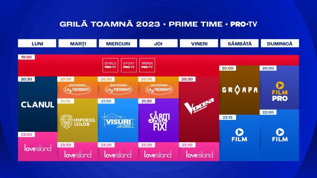 Toamna aceasta, vom trăi toate emoțiile la PRO TV. Am dezvăluit astăzi grila cu cele mai multe lansări și o diversitate mare de produse, începând cu cele mai obiective și de încredere știri, până la divertisment de calitate, comedie, seriale de acțiune și romantism. Lansarea grilei aduce un proiect dedicat VOYO, Love Island. Acest format a fost achiziționat, în primul rând, pentru publicul platformei online și va fi disponibil întâi pe VOYO și mai apoi pe PRO TV. Sunt sigur că vom avea o toamnă extraordinară de care sper să se bucure fiecare român, la PRO TV și pe VOYO!”, a afirmat Aleksandras Cesnavicius, directorul general al Pro TV.