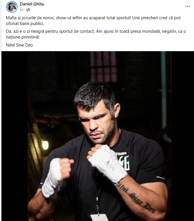 Da, azi e o zi neagră pentru sportul de contact. Am ajuns în toată presa mondială, negativ, ca o națiune primitivă! Nihil Sine Deo” a scris Daniel Ghiță, pe pagina sa de Facebook.