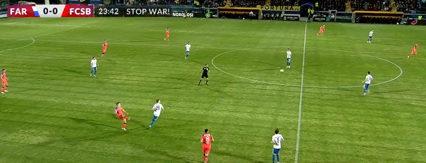 Întâi, Olaru a recuperat o minge în terenul propriu. L-a văzut excelent pe Florin Tănase și l-a lansat cu o minge lungă trimisă cu piciorul stâng. Căpitanul FCSB nu a ratat ocazia și a deschis scorul (Min.25).