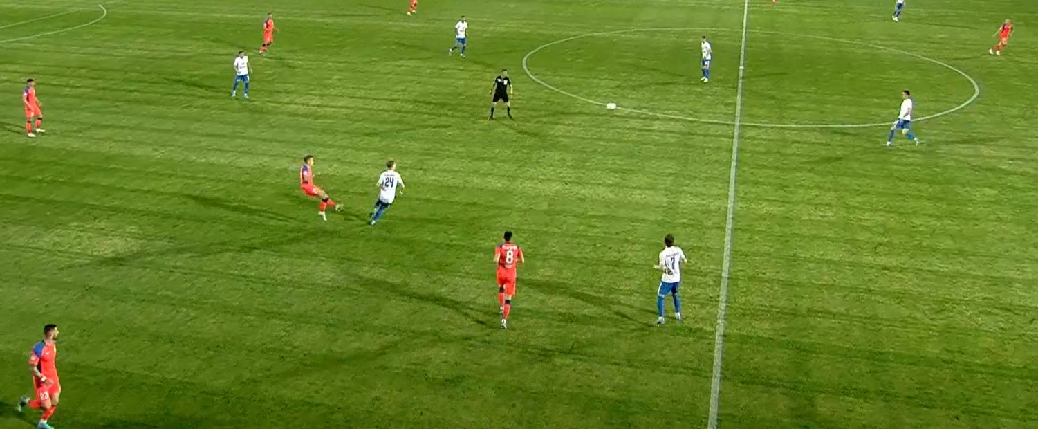 Apoi, același Darius Olaru a marcat câteva minute mai târziu. Florinel Coman a alergat excelent pe partea dreaptă, l-a deposedat pe Mladen și i-a centrat perfect în fața porții. Olaru a preluat cu dreptul și a marcat cu stângul, care începe dă devină piciorul lui de bază. (Min.34).