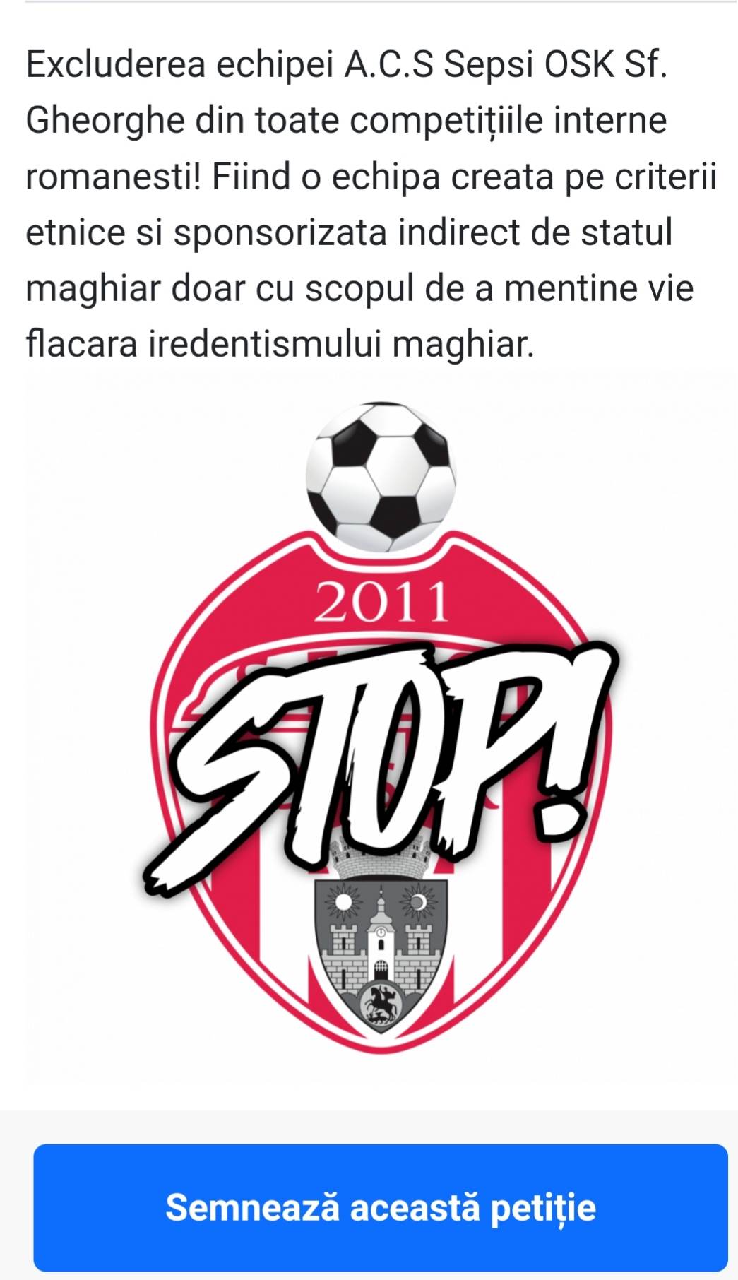 Ultrașii au lansat o petiție pentru excluderea clubului Sepsi din Superliga