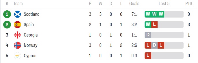 În ciuda faptului că îi are în lot pe Haaland și Odegaard, Norvegia o duce rău în preliminariile Euro. După 3 jocuri, are un singur punct, venit în urma egalului din Georgia. Norvegia a pierdut cu 3-0 în fața Spaniei, în martie, și cu 2-1 în fața Scoției, care conduce grupa cu 9 puncte.