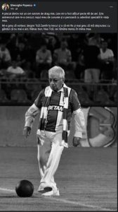 ” A plecat dintre noi un om extrem de drag mie, care mi-a fost alături peste 40 de ani. Este antrenorul care m-a crescut, nașul meu de cununie și o persoană cu adevărat specială în viața mea. Mi-e greu să vorbesc despre Tică Zamfir la trecut și o să-mi fie și mai greu să mă obișnuiesc cu gândul că nu mai e aici. Rămas bun, Nea Tică, vei rămâne mereu în inima mea”, a fost mesajul postat de Gheorghe Popescu pe pagina proprie de socializare.