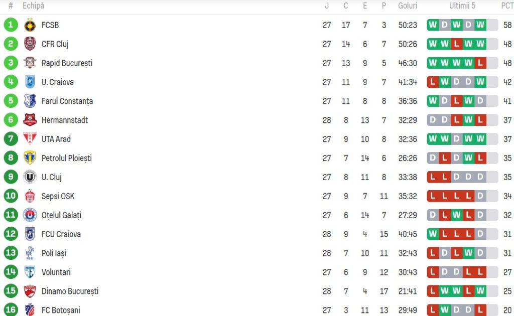 CLASAMENT PLAY-OUT SUPERLIGA