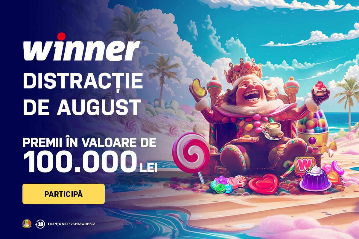 Acum este momentul să te alături competiției! Participă și tu la promoția „Distracție de August”. Poți fi tu unul dintre marii câștigători care vor celebra vara cu premii spectaculoase! Fii parte din această campanie și transformă luna August într-o experiență de neuitat la Winner!